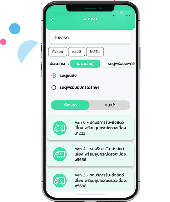 3. เรียกรถพยาบาล: เรามีบริการเรียกรถพยาบาลเพื่อรับสัตว์เลี้ยงของคุณและนำไปส่งที่โรงพยาบาลที่เป็นพันธมิตรของเรา คุณจะได้พบหมอได้อย่างรวดเร็วและมีอุปกรณ์ทางการแพทย์ครบครันในรถพยาบาล และหากคุณต้องการรักษานอกสถานที่คุณยังสามารถเรียกรถพร้อมแพทย์ไปให้คุณได้ทันที